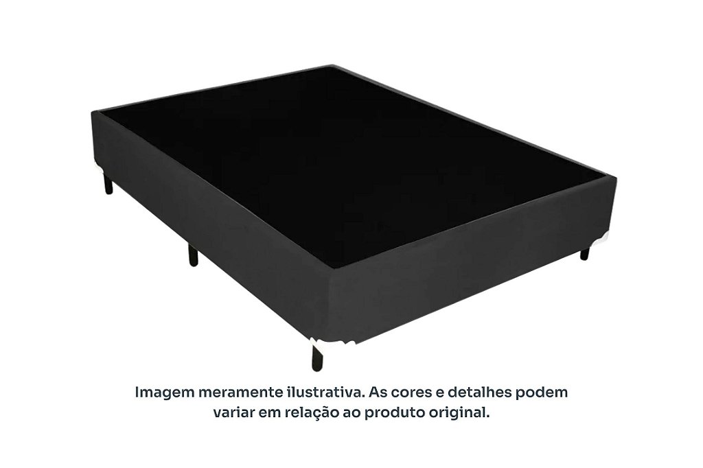 Base box casal com estrutura resistente de madeira de eucalipto, revestida em tecido, proporcionando durabilidade e suporte firme.