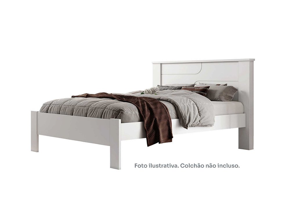 Cama de casal com acabamento em pintura UV, detalhe em baixo relevo nas cabeceiras e estrutura resistente que suporta até 160 kg.
