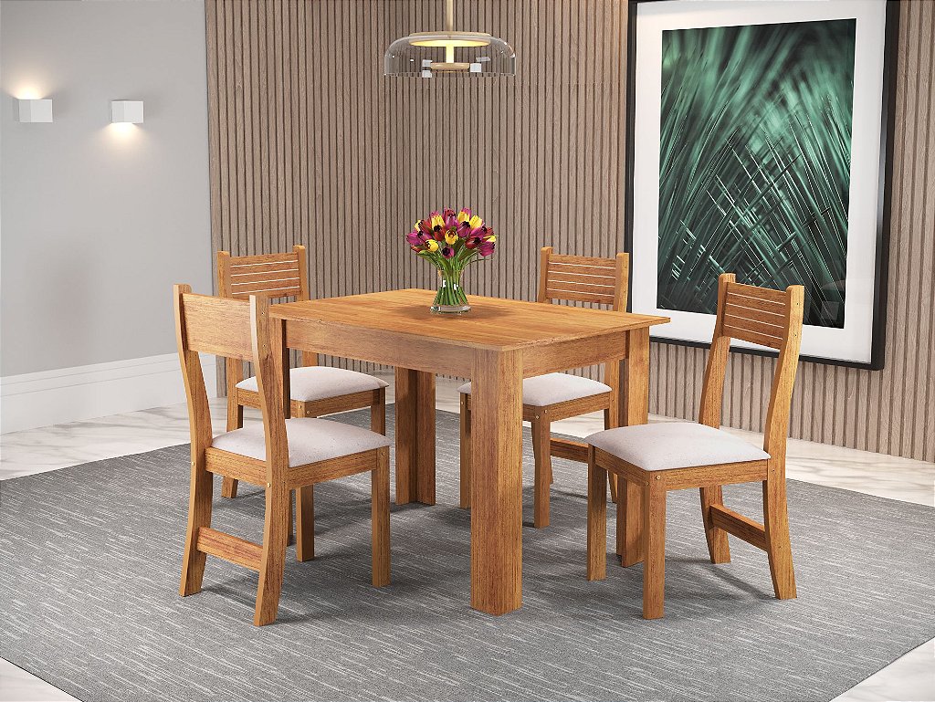 Este belíssimo conjunto mesa de jantar com 4 cadeiras Briza, foi desenvolvido com materiais de qualidade, que garantem maior durabilidade e resistência! A mesa possui design moderno, deixando o ambiente ainda mais elegante e sofisticado. Cadeiras com assentos em veludo toque macio e confortável, excelente para receber os amigos e familiares, tornando o momento ainda mais especial!