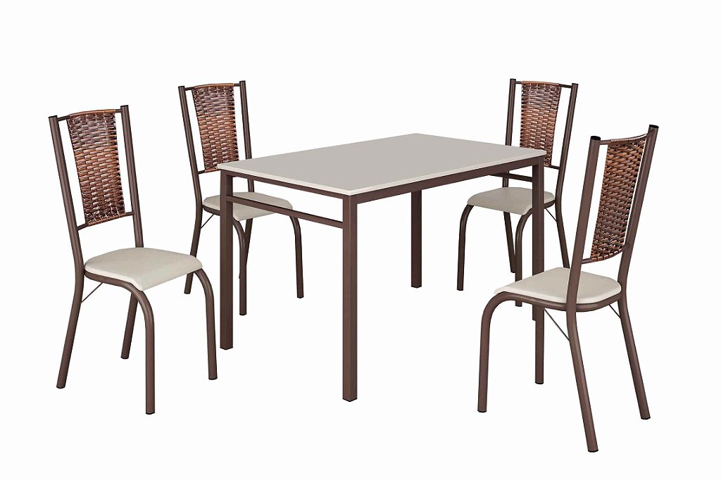 Renove sua sala de jantar com o Conjunto Mesa com 4 Cadeiras! Com acabamento em pintura eletrostática, esse conjunto traz um toque de elegância e durabilidade para o seu ambiente. As cadeiras possuem assento em espuma MB, garantindo conforto e resistência para o seu dia a dia. Além disso, cada cadeira suporta até 130 kg, proporcionando segurança e estabilidade durante as refeições.
