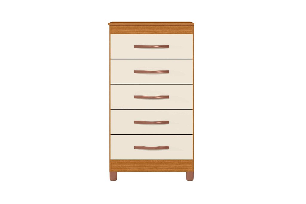 Eleve o estilo do seu quarto com esta cômoda de 5 gavetas em MDP, perfeita para organização e sofisticação! Com puxadores metalizados que brilham como detalhes de luxo e pés inclusos que garantem estabilidade e design moderno, ela é a combinação ideal de praticidade e elegância. Um toque de charme para o seu espaço!