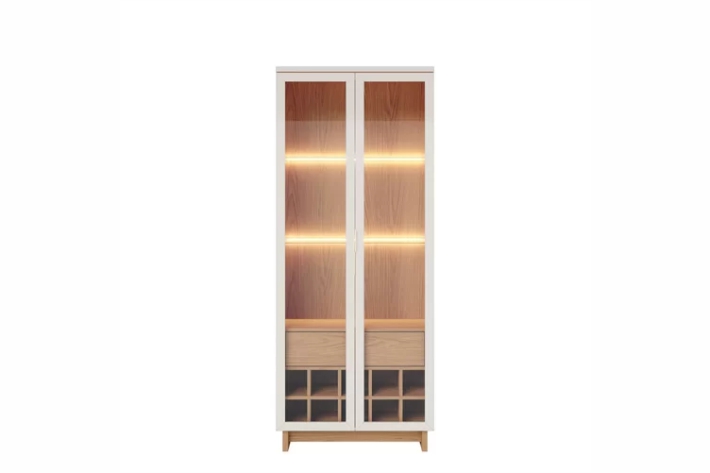 A Cristaleira é um produto completo, possui três prateleiras de vidro com iluminação em led, adega para a disposição de vinhos e bebidas e uma gaveta com corrediças telescópicas, ideal para guardar talheres. Esse produto traz ainda um charme especial trazido pelas suas portas de vidros com estilo retrô, este é o produto perfeito para compor sua sala de estar e/ou jantar.