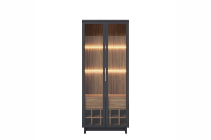 A Cristaleira é um produto completo, possui três prateleiras de vidro com iluminação em led, adega para a disposição de vinhos e bebidas e uma gaveta com corrediças telescópicas, ideal para guardar talheres. Esse produto traz ainda um charme especial trazido pelas suas portas de vidros com estilo retrô, este é o produto perfeito para compor sua sala de estar e/ou jantar.