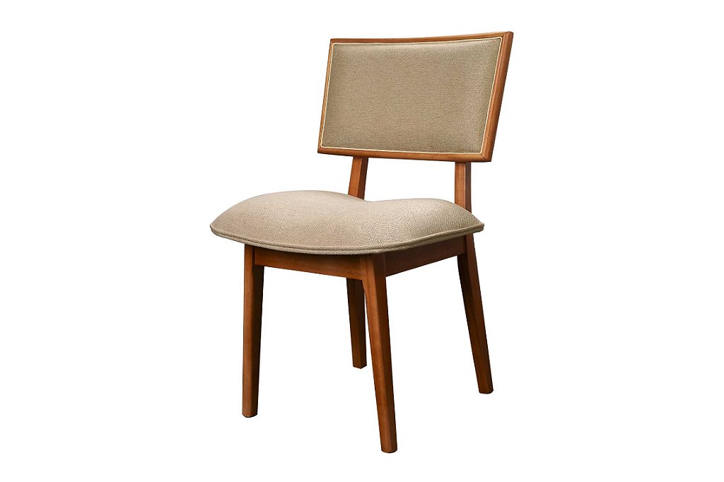 Cadeira com estrutura em madeira maciça, assento e encosto estofados para máximo conforto. Possui acabamento em verniz de alta qualidade, unindo elegância e robustez. Ideal para quem busca estilo e durabilidade.