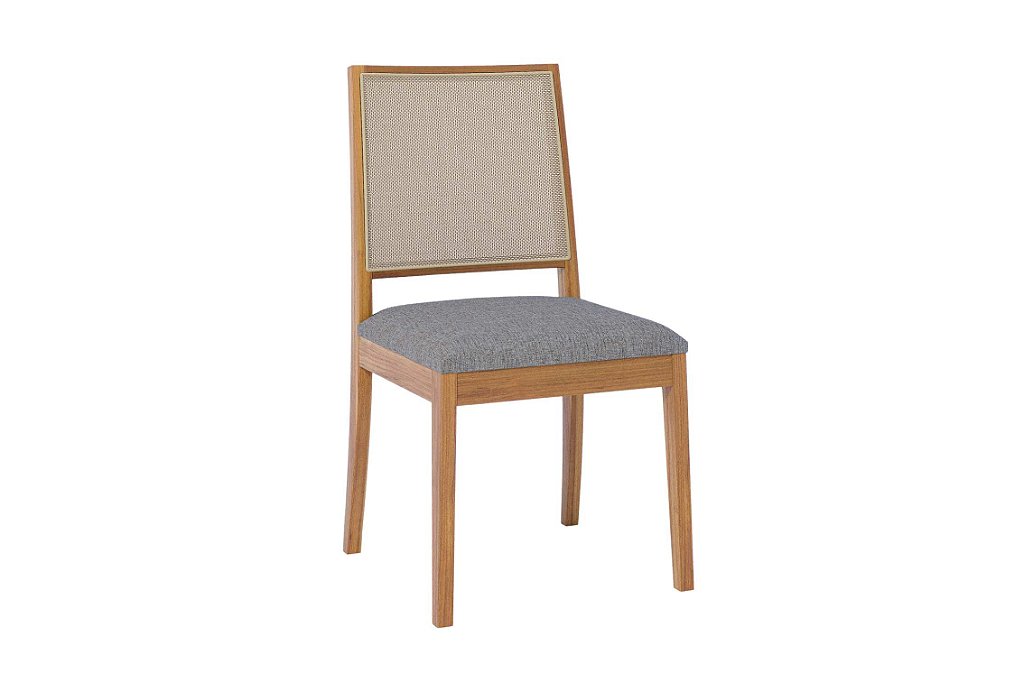 Cadeira com estrutura em madeira de Tauari, que une resistência e beleza natural. O assento estofado com espuma de alta densidade oferece conforto prolongado, enquanto o encosto em tela sintética garante leveza e ventilação. Perfeita para compor ambientes sofisticados e aconchegantes.