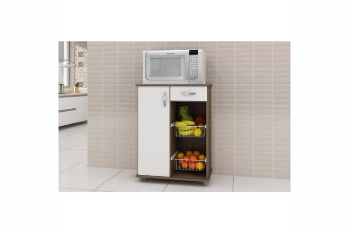 A Fruteira Belize New da Notável Moveis é ótima para armazenar utensílios diversos na sua cozinha! Ela possui cestos aramados que são mais resistentes e irão manter as frutas e legumes sempre organizados. Na prateleira interna você pode guardar seus eletrodomésticos para uma rotina mais prática.