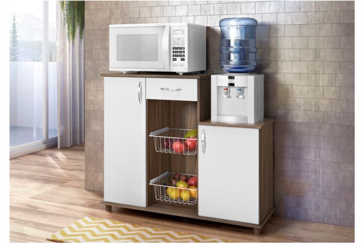 Medidas A x L x P (cm): 89 x 103 x 38cm DESCRIÇÃO TÉCNICA: • Cestos aramados • Prateleira interna • Gaveta com corrediça metálica Mais informações: Funcionalidade! Isso é o que a Fruteira Diva New da Notável Móveis oferece, pois em um único móvel é possível manter tudo organizado com praticidade. Na sua prateleira interna, é possível guardar os alimentos ou eletrodomésticos de modo que fiquem protegidos. No tampo pode-se apoiar o forno micro-ondas com segurança. E ela possui ainda dois cestos em aramado que são mais resistentes e uma gaveta com corrediças metálicas para os objetos menores. Informações importantes: As cores do produto podem variar de acordo com o seu monitor, a iluminação do ambiente em que você está e até mesmo a sua percepção visual. Além da cor pequenos detalhes e acabamentos podem não ficar evidentes na foto, por isso as imagens são meramente ilustrativas. Os objetos decorativos que aparecem na foto não acompanham o produto. Para manutenção e preservação de seu móvel é importante seguir estritamente nossas dicas: Evite locais úmidos, mantenha-o distante de líquidos e de fontes de calor, evite a exposição prolongada ao sol. Para limpeza, sugerimos a utilização de uma flanela seca para retirada de pequenos resíduos, em caso de limpeza úmida fazer o uso de uma flanela parcialmente úmida e sabão de coco.
