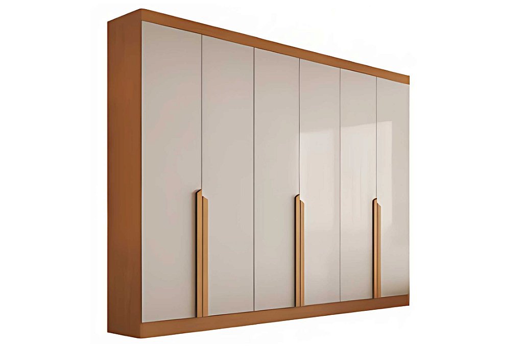 Guarda-roupa 100% MDF, que combina resistência e sofisticação em cada detalhe. Conta com 6 gavetas com corrediças telescópicas, garantindo abertura suave e durabilidade. Nichos laterais com 6 prateleiras e espaço para roupas longas oferecem organização inteligente, enquanto o cabideiro em alumínio proporciona firmeza e acabamento moderno.