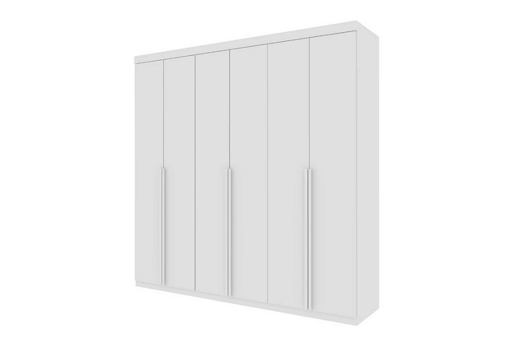 Guarda-roupa 6 portas em MDF com acabamento de alta qualidade, ideal para um quarto moderno e organizado. Possui cabideiros em alumínio, dobradiças reforçadas de 26mm (3 por porta) e corrediças telescópicas que garantem suavidade no uso. É a combinação perfeita entre durabilidade, praticidade e design.