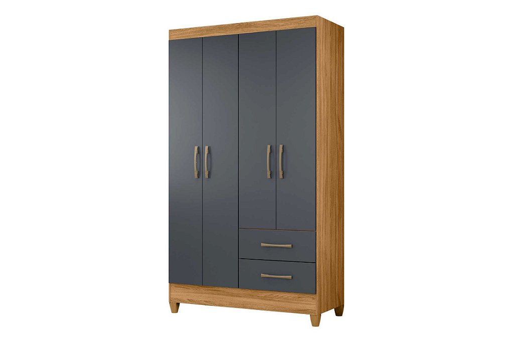 Com 4 portas de bater, este guarda-roupa oferece uma grande capacidade de armazenamento, garantindo que todas as suas roupas e acessórios fiquem devidamente organizados e protegidos. Além disso, ele conta com 2 gavetas com corrediças de metal, proporcionando um espaço extra para guardar peças menores.