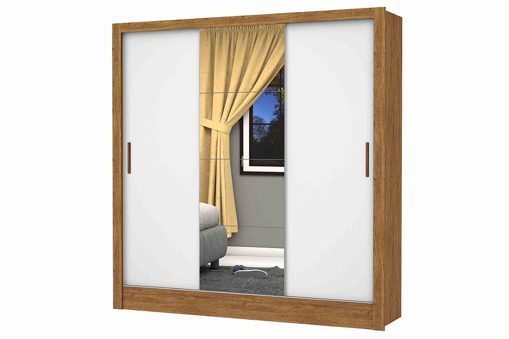 -Guarda roupas de 3 portas de correr com 3 gavetas internas;