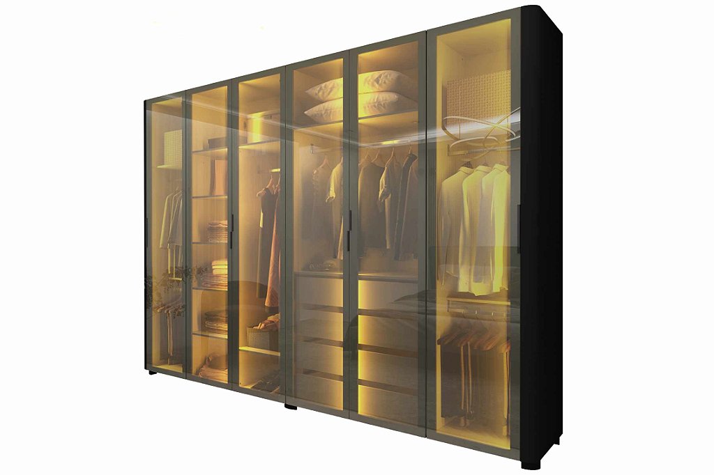 Se você busca por um móvel que alia elegância e funcionalidade, encontrou o produto perfeito. O guarda-roupa conta com portas em vidro Reflecta, que conferem um charme único ao ambiente, além de serem extremamente resistentes. Suas gavetas possuem corrediças telescópicas, garantindo suavidade e praticidade ao abrir e fechar.