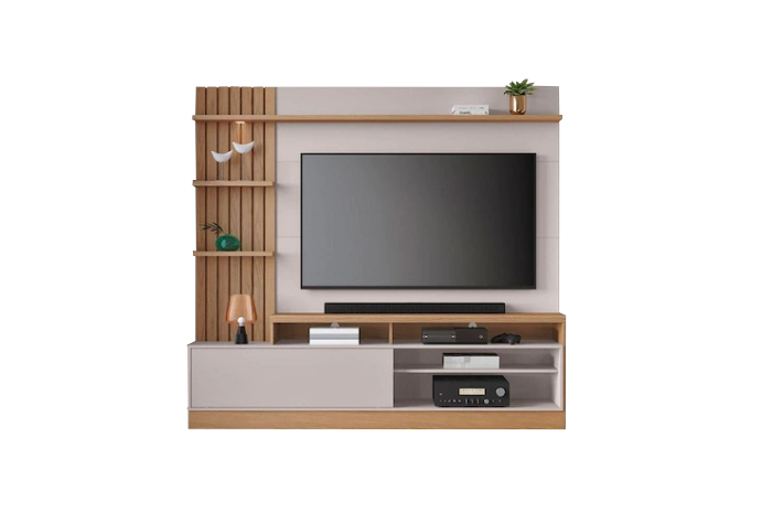 Com detalhes ripados, iluminados por luz de led em seu painel, o Home Theater Maceió é um móvel com o design versátil que combina tanto com ambientes modernos e minimalistas, quanto os clássicos. Possui quatro nichos internos com espaços para acomodar aparelhos eletrônicos e objetos decorativos. Além disso, possui uma porta basculante com o sistema de pistão a gás que garante suavidade em sua abertura. Disponível em duas cores, é um móvel ideal para quem deseja ter um verdadeiro cinema em casa, pois seu painel suporta TV’s de até 65 polegadas.