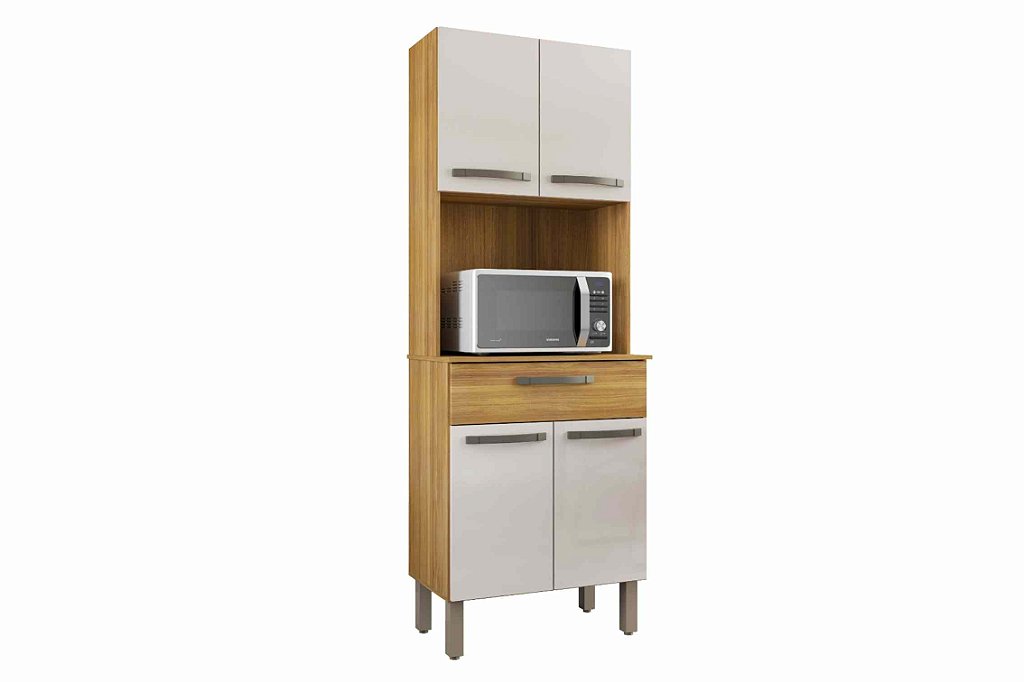 Possui estrutura produzida em MDP de 12 e 15 mm, com portas em MDP de 15 mm. Acabamento interno e externo com pintura UV na cor branco brilho. As dobradiças utilizadas na porta são metálicas de pressão 26mm. O sistema de montagem é feito com parafusos e cavilhas. Os puxadores são em ABS modelo perfil. O sistema de embalagem é feito com tampo e fundo, o qual aumenta a proteção dos volumes no transporte e manuseio.