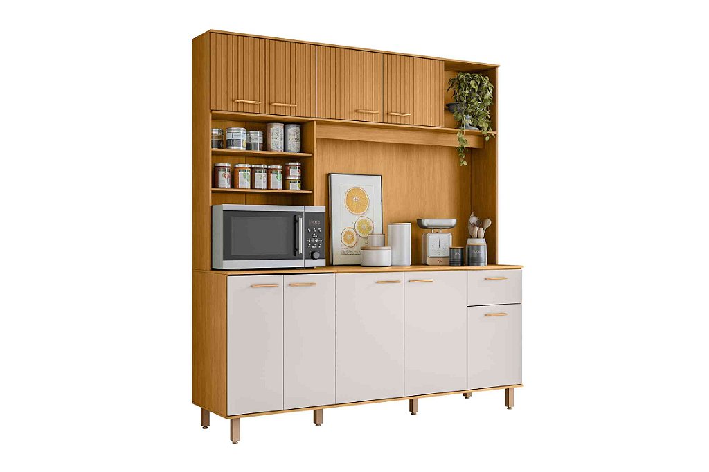 Transforme a sua cozinha com o Kit Cozinha de alta qualidade. Feito em MDP, este kit possui 09 portas, sendo 04 com detalhes ripados que adicionam um toque de charme à sua decoração. Além disso, conta com 01 gaveta espaçosa para organizar seus utensílios e corrediças telescópicas que garantem suavidade ao abrir e fechar.