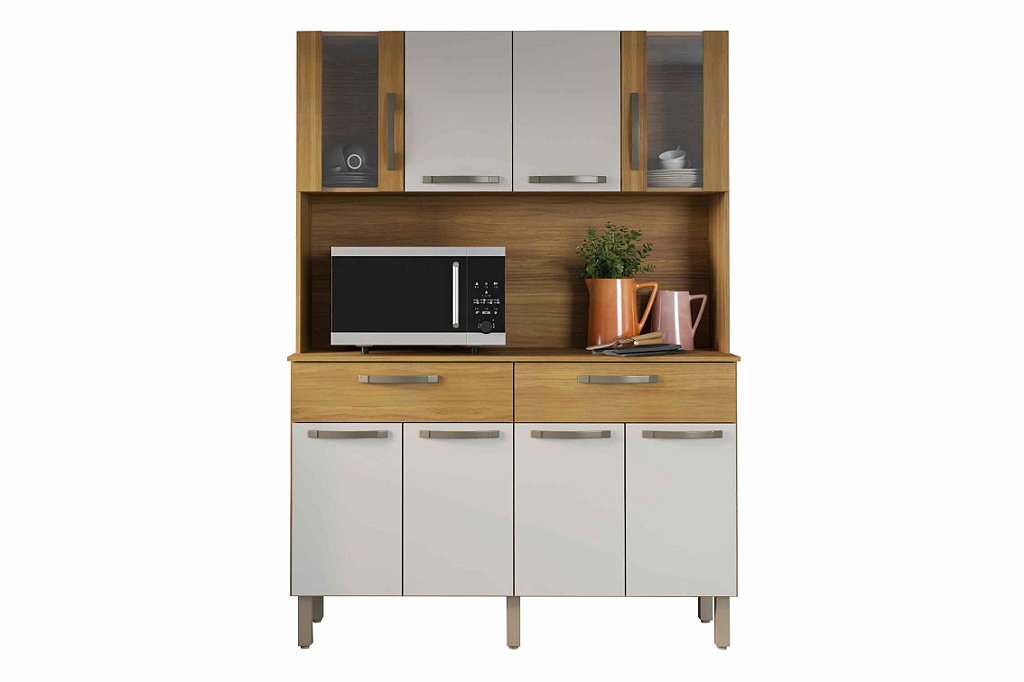 Transforme sua casa em um ambiente ainda mais acolhedor com o Kit Cozinha! Com acabamento interno e externo em pintura UV, este móvel é a combinação perfeita de elegância e funcionalidade para o seu lar. Com 08 portas equipadas com dobradiças metálicas de pressão, 02 gavetas com corrediças telescópicas, pés em PVC e puxadores em ABS, este kit oferece praticidade e durabilidade para o seu dia a dia na cozinha.
