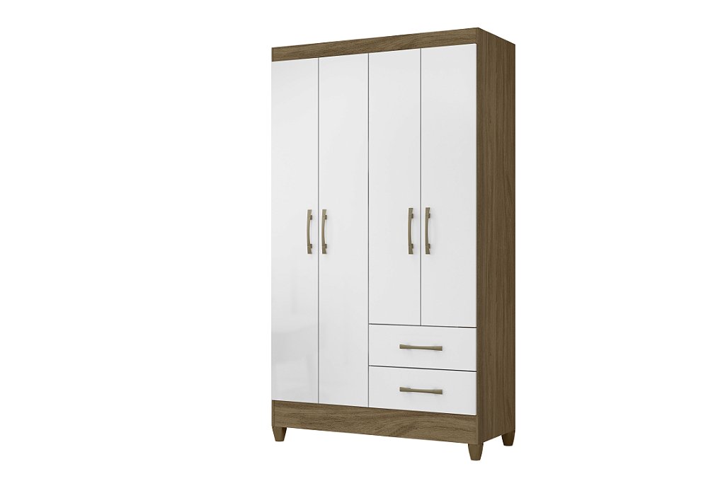 Com 4 portas de bater, este guarda-roupa oferece uma grande capacidade de armazenamento, garantindo que todas as suas roupas e acessórios fiquem devidamente organizados e protegidos. Além disso, ele conta com 2 gavetas com corrediças de metal, proporcionando um espaço extra para guardar peças menores.