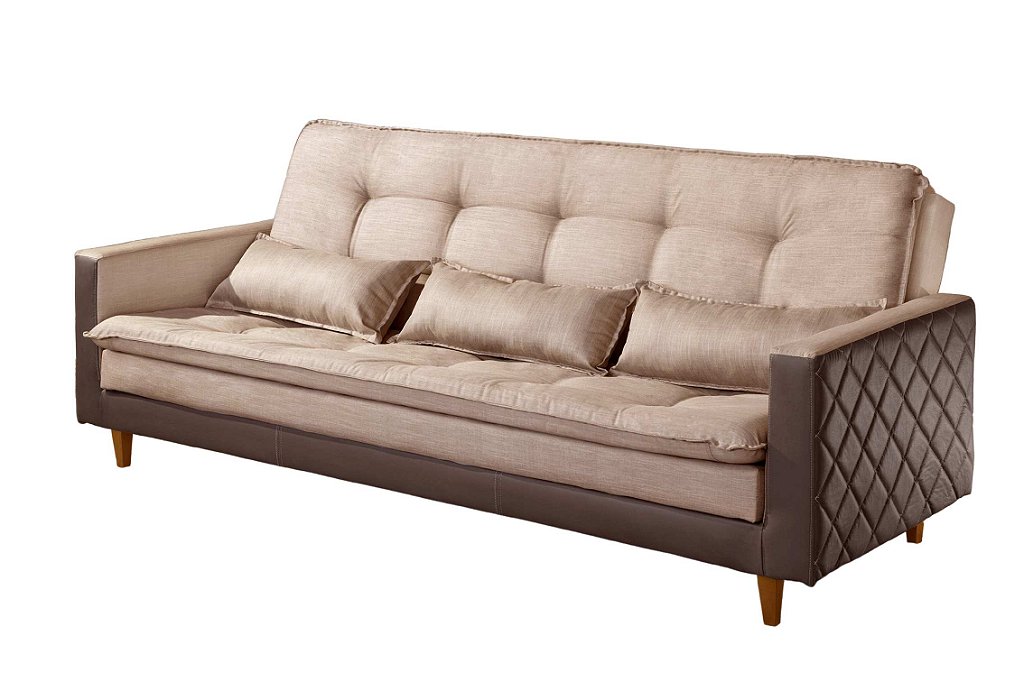 SOFA CAMA VIENA LINHO BEGE/2274 C/ KORINO MARROM/2239 LUXURY