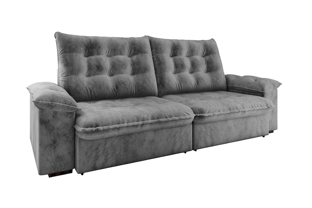 Aproveite o conforto do sofá retrátil com assento em espuma D23, encosto fixo reclinável e percinta elástica, suportando até 100kg por assento!