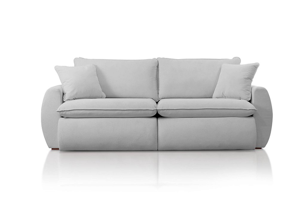 Com assento de 18 cm em espuma SOFT D28, molas ensacadas e bonnel flex com percinta elástica, este sofá retrátil oferece conforto e durabilidade. Sem caixa e com almofadas decorativas inclusas, traz leveza e charme ao ambiente.