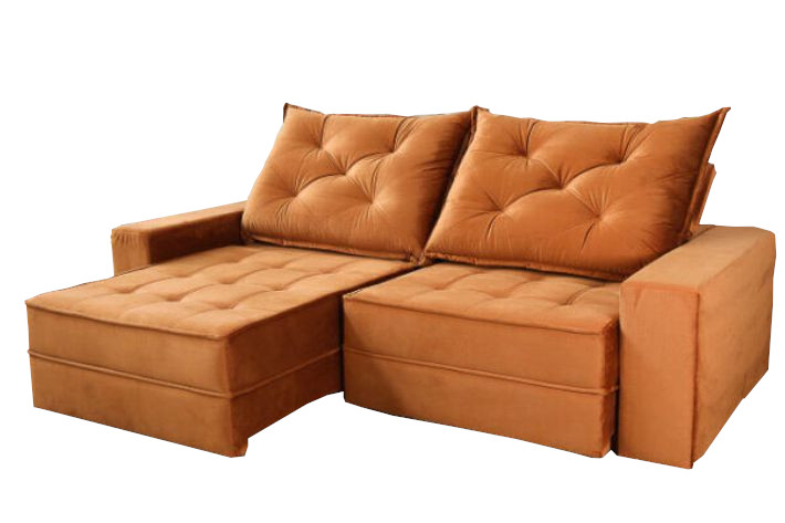 O assento é feito com 110 molas ensacadas por assento totalizando 220 e uma super camada de espuma D26 com camada de espuma soft. Além disso, as corrediças para movimentação do assento no abrir e fechar são em tubo de ferro, com isso a qualidade acima de tudo, a durabilidade aumenta significativamente. O encosto com almofadas fixas compostas de fibra siliconada, o que proporciona mais conforto. Possui 4 posições de inclinação. A estrutura de madeira eucalipto de reflorestamento, produto ecologicamente correto. O revestimento é em tecido veludo. O veludo é um tecido que tem um superfícies extremamente macia devido a pequenos fios armados e delicados.
